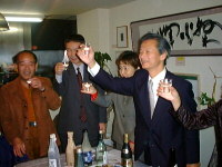 18時から、姫井由美子と仲間たちの新酒パーティー。気のいい仲間が集まって、賑やかに大吟醸などを飲み較べました。姫井さんの「ひと呑みで めもと赤らむ いい気持ち」へ、「いやしなら めざし肴の ひとり酒」と、ちょっとわびしい返句。