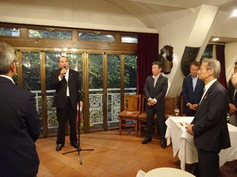 17時半過ぎに会館事務所を出て、18時過ぎから1時間半ほど、明日からの大会で退任予定の全印刷局労組の竹井京二委員長を送る会に出席しました。4期8年間にわたり委員長を務め、経営形態を巡る議論をリードし、行政執行法人に落ち着けました。私は顧問議員団の一員で、団長の赤松広隆さんらに続いて竹井委員長が挨拶し、その後に顧問議員が一言ずつ挨拶をしました。懇談の後に、三本締めで閉会となりました。