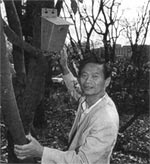 東京からホットニュース。江田議員の架けた巣箱に、シジュウカラが巣を作りました。毎年3月、小学生のみなさんと国会議員有志で、国会前庭に巣架けしているもので、ひからびたヒナ一羽を残し、一家は巣だった後。今年の巣も利用されるといいですね。