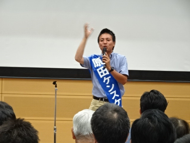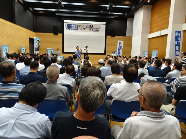 原田候補は18歳選挙権実現から話を始め、「過去は大事だが、問題は未来だ」と強調して、若者の参加で若者に目を向けた政治を実現することを、さらに「教育子育て最優先」を掲げて岡山から政治を変えることを訴えて、支援の輪を広げるようにお願いしました。最後に鳥井良輔県議が情勢報告をし、ハラケンコールで締めくくりました。帰宅は21時になりました。