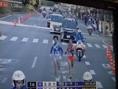 14時半ころ、東京の娘から電話で、「直ぐにテレビを見ろ」というので箱根駅伝にチャンネルを合わせると、「青学のアンカーが若い頃のお父さんそっくりだと、わが家で盛り上がっている」というのです。「どこがー」と思いましたが、嬉しいような恥ずかしいような気分でした。