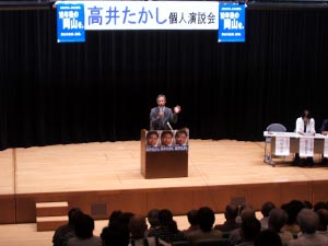 候補者とは18時に切り離し、最後の1時間は私が選挙カーの助手席に座りました。19時に個人演説会場に着き、10分程度の応援演説。移動して、20時から次の会場で、20分程度の応援演説。終了後に候補者が到着し、15分の演説。どこでも候補者とご一緒することはないので、初めて候補者の演説をフルに聞きました。自分の生い立ちから始め、3つの約束も端的にまとめ、聞かせました。