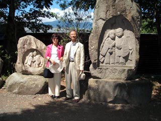 10時前にホテルを発って、安曇野市のわさび園へ。東京ド−ムが11個入るという広さで、爽やかな清流がわさびを育んでいます。この地域の道祖神は、男女が手をつないでおり、柳田國男に注目されました。