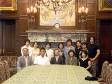 同−議長室 議員宿舎に戻って着替え、11時半前に妻とともに議長公邸へ。やがて地元からアゼリア会の皆さんなど10人強が来られ、庭を案内して、昼食懇談。13時ころ、みんなで国会議事堂に移り、正面で記念写真を撮り、議長室などを案内しました。