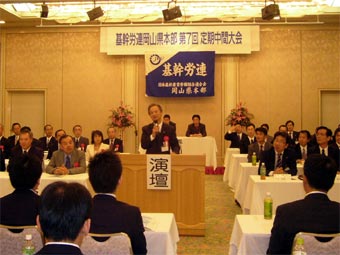 15時から、基幹労連岡山県本部の定期大会に出席しました。石田委員長の挨拶の後、来賓として中央本部の内藤委員長、連合岡山の二宮会長、轟木利治さんに続いて挨拶し、中座。