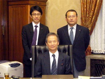 昼からは議長室に移り、デスクワークや来客応対。13時に岡田克也外相が、15時前に小沢鋭仁環境相が、続いて川端達夫文科相が、就任挨拶に来られました。14時半には、全日本中学校長会の岩瀬正司会長らが、教員数の増加などの現場の切実な要請に来られました。