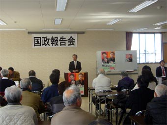 14時から市内南区で、質疑応答も含めて40分ほど、国政報告会を行いました。150人ほどの大盛会で、高井崇志さんも出席してくれました。