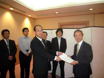 13時から1時間弱、県公務公共サービス労働組合協議会の宇高議長らから地方財政確立と公務員労働関係の改革などの要請を、さらに県平和・人権・環境労組会議からのTPPに関する要請を聞き、意見交換しました。