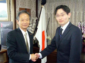 16時前に大臣室に戻り、所管事項の打ち合わせや黒岩政務官との意見交換など。大臣室の国旗も弔旗にしています。被災者生活支援に派遣される入局管理局の職員1人が挨拶に来て、激励しました。他にも多くの職員が、被災現場で支援に当たっています。