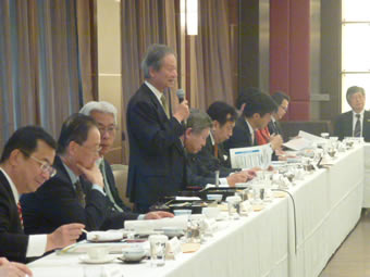 今日は、7時45分に議員宿舎を出て、8時前から1時間半弱、日本弁護士政治連盟(弁政連)の主催による日本弁護士連合会(日弁連)と弁政連の役員の皆さんと民主党法務関係者との朝食会に出席しました。弁政連の伊藤常務理事の司会で、弁政連の平山理事長と日弁連の山岸会長の挨拶があり、私が党を代表して挨拶。党側の出席者が少なくなりなりましたが、一層の関係強化をお願いしました。その後、災害復興問題、法曹養成・同人口問題と刑事・少年司法問題につき、それぞれ日弁連の担当副会長から問題提起があり、出席国会議員の発言の後に、党最高顧問の横路さんが閉会挨拶をしました。