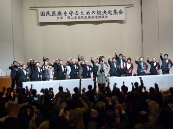 17時から、県医師会等で構成する県国民医療推進協議会主催の「国民医療を守るための総決起集会」に出席しました。協議会は医療サービス提供側だけでなく、県腎臓病協議会や県難病団体連絡協議会なども含む組織で、集会は国民皆保険の堅持、過度な規制緩和反対、消費税問題の解決と医療財源の確保を目的とします。協議会会長の県医師会石川会長が冒頭の挨拶をし、来賓として出席の与野党の国会議員が挨拶し、柚木さんに続き私も決意表明しました。その後、県歯科医師会長らの決意表明があり、県老健施設協議会の藤本会長が決議案を朗読して採択され、最後に頑張ろうコールで締め括りました。