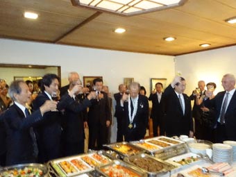 会館事務所に戻り、17時から短時間、法務省担当者から再犯防止関係の施策につき説明を聞きました。その後、若干の来客応対をし、17時40分に出て、18時から1時間弱、ブルガリア大使公邸で、参議院日本ブルガリア友好議員連盟会長の岸宏一参議院議員に対するマダラ騎士勲章一等の授与式に出席しました。地元の山形県から大勢の支援者の皆さんがお越しで、大盛況でした。