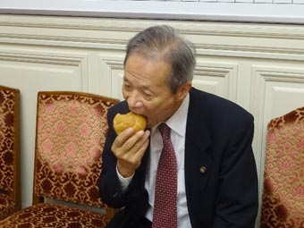 12時から2時間ほど、中国大使館を訪ね、程永華大使、劉少賓公使らと日中友好会館の会長の私、宮本雄二副会長、武田勝年理事長、鄭祥林中国代表理事、荒井克之常務理事らと昼食懇談しました。会館で最近、中国から留学の後楽寮生らのロゴ入りバッジなどを作ったので、これをお持ちし、青少年交流の課題などにつき意見交換しました。