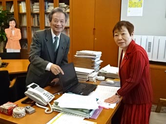 原発仮処分の取材13時過ぎに、僧侶で前参議院議員の藤谷光信さんが来られ、今夏の参院選の黒石健太郎予定候補の応援につき、意見交換しました。14時から、柚木道義さんのところに国会見学に来た地元の平井洋子さんのご一家が来られ、暫く懇談して一緒に写真を撮りました。その間に、成年後見などにつきデスクワークをし、15時ころに相原久美子さんと打合せをしました。