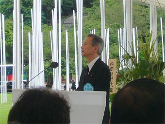昨年から今年にかけて、普天間基地の移設問題をはじめとする米軍基地のあり方が、国政の大きな論点になりました。この問題の歴史を遡ると、どうしても熾烈な沖縄戦に行き当たります。つまり、沖縄戦は単なる歴史ではなく、現代につながる課題です。私たちは、記憶を風化させずに語り継ぎ、沖縄の問題を一地域のこととして傍観するのでなく、自分たちの課題と捉え、よりよい選択のために議論を深め心を通わせ、精一杯の汗をかかなければなりません。私は今、この「平和の礎(いしじ)」を前に、政治の役割の重大さを痛感しています。